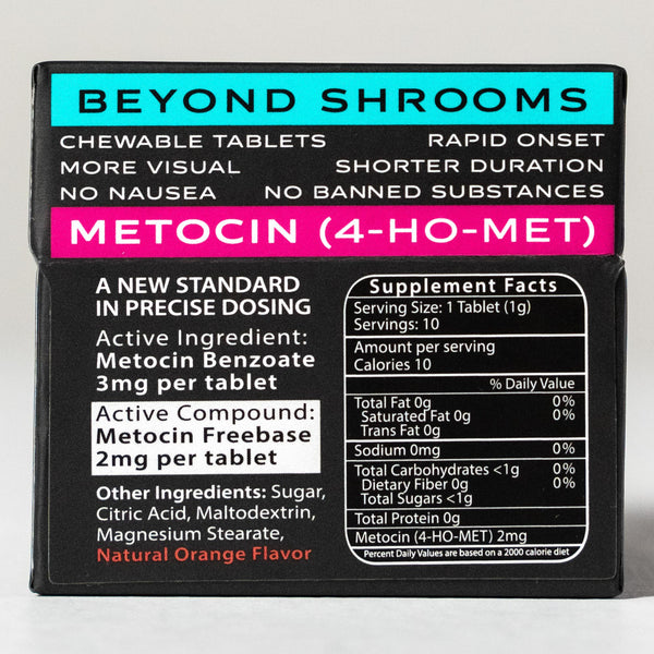 Each tablet contains 3mg of Metocin (4-HO-MET), equivalent to eating 500mg of shrooms.